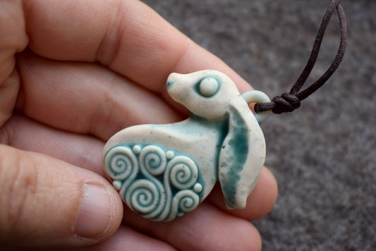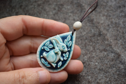 Leafy Rabbit in Cherry with Snow Jade Bead