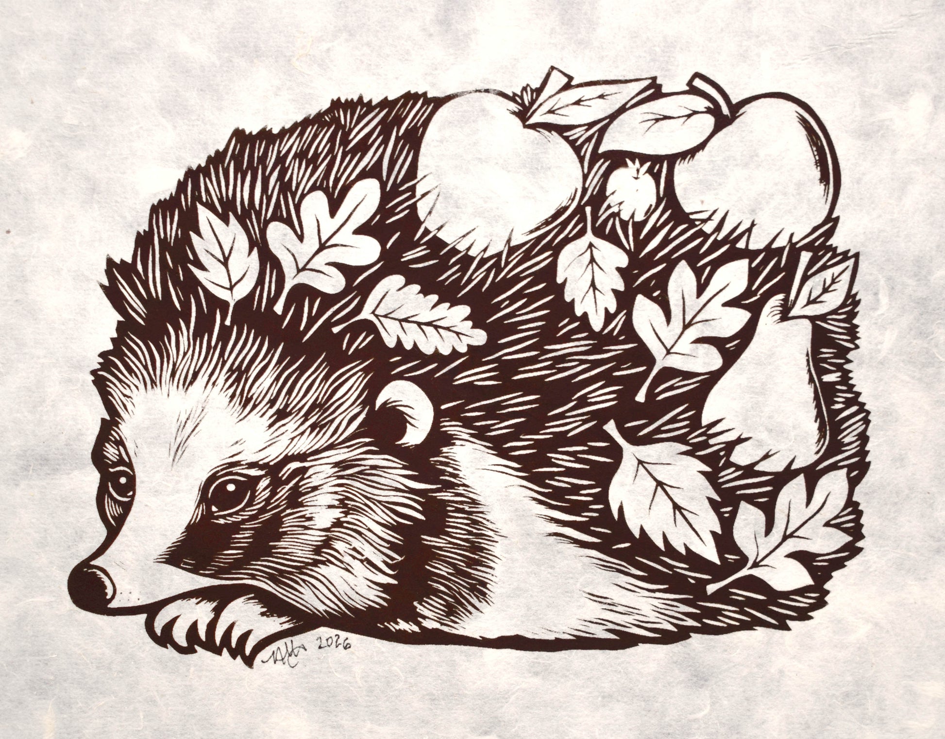 Edith the Hedgehog - Screenprint on Mitsumata (b29)