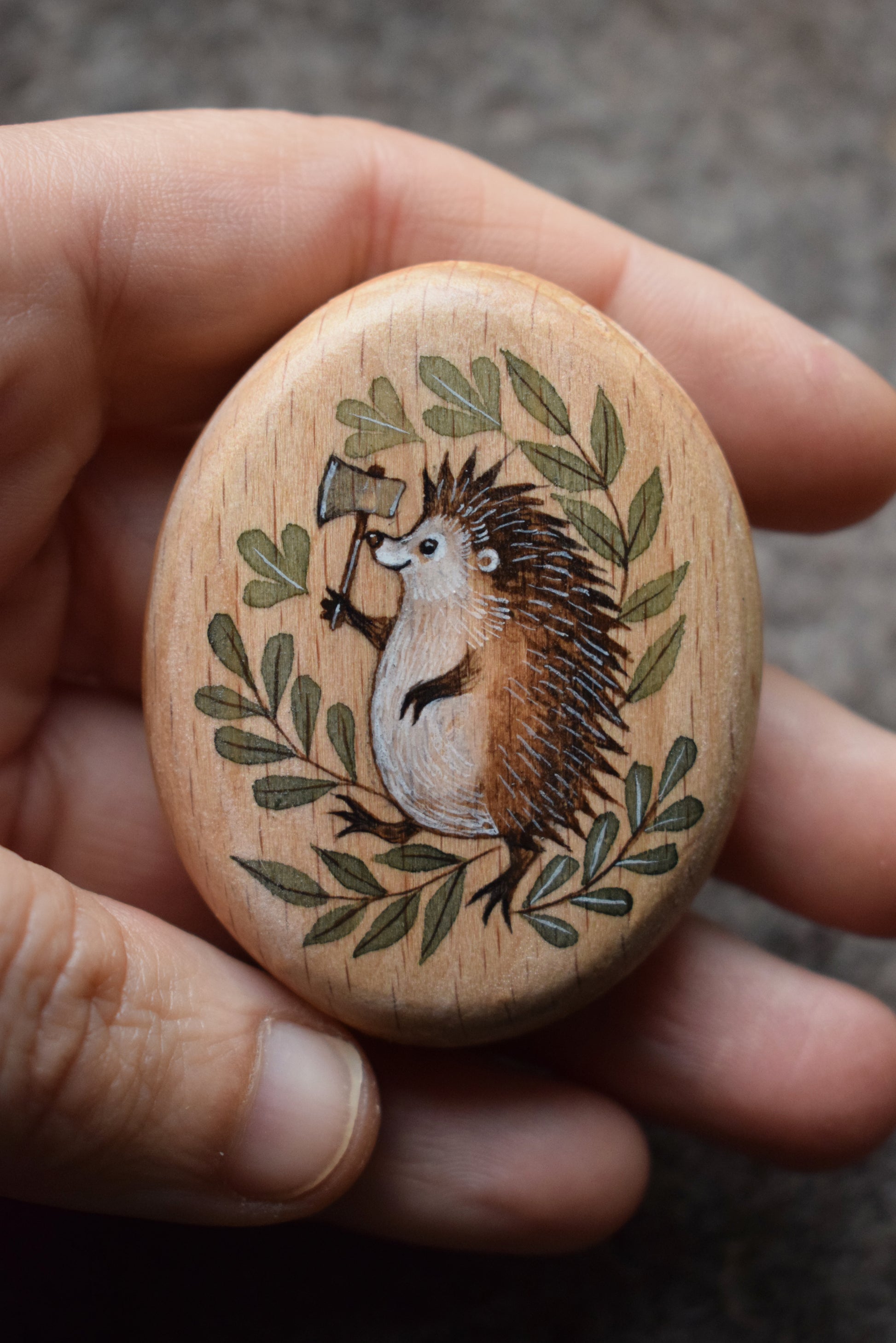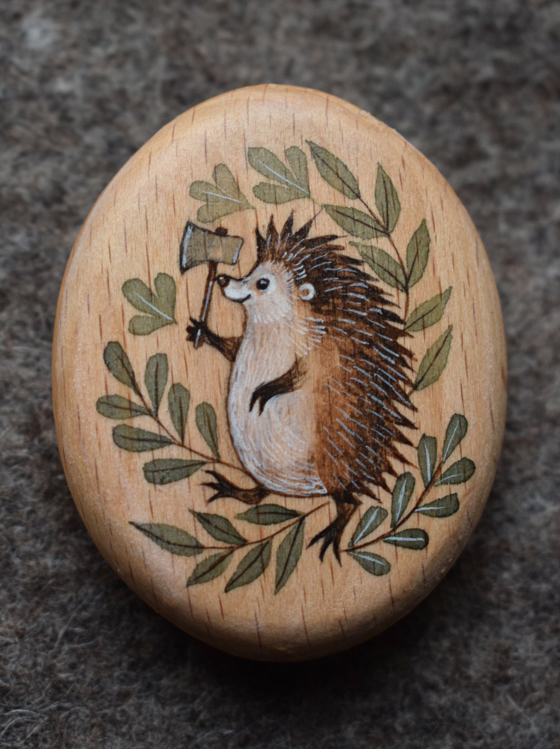 Painted in watercolour on a smooth, pebble-shaped piece of beech wood (approx. 55 x 45 x 15mm)